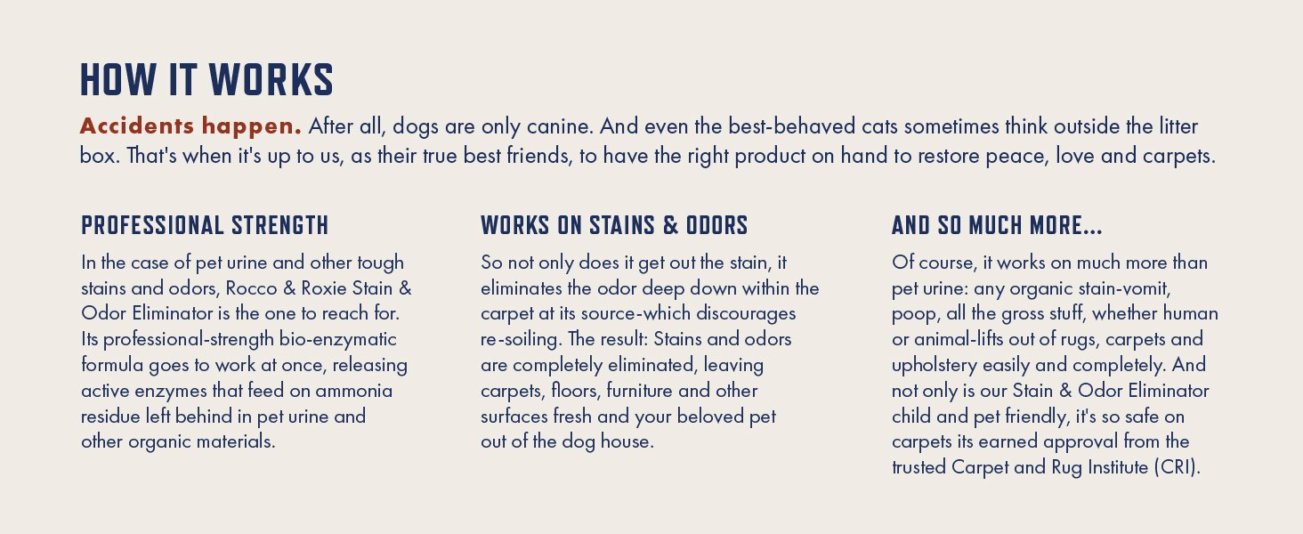Buy With Confidence: You want the best for your best friend; we do, too; if you are not satisfied with the performance of this Rocco & Roxie stain & odor eliminator, contact us; we are determined to make it rightx